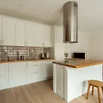 Denna lägenhet på 80 m^2 har arbetsbord, teve och brandvarnare i varje rum. Gäster kan använda separat toalett och badkar.